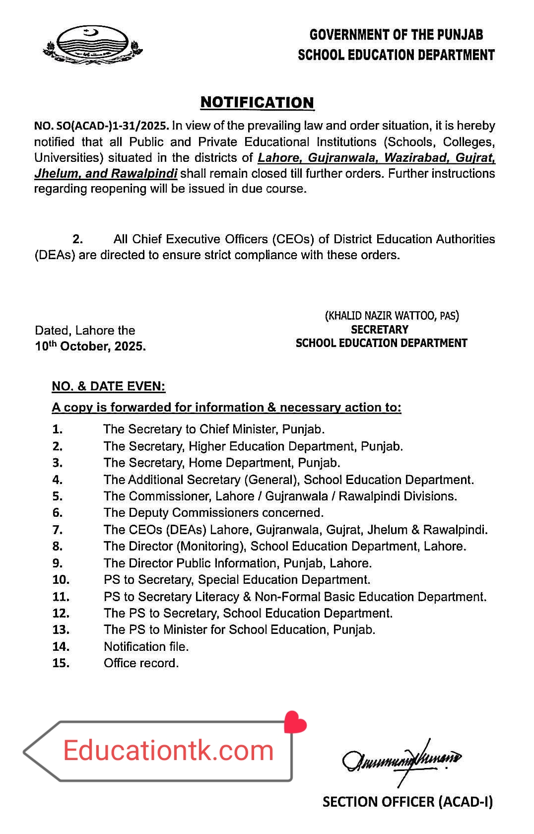 Punjab School Closure Notification Punjab School Closure Notification: Schools Closed Till Further Orders Punjab School Closure Notification: Schools Closed Till Further Orders BREAKING NEWS: The Government of the Punjab School Education Department has issued a crucial notification, ordering the immediate closure of all public and private educational institutions in several major districts. This decision, announced …