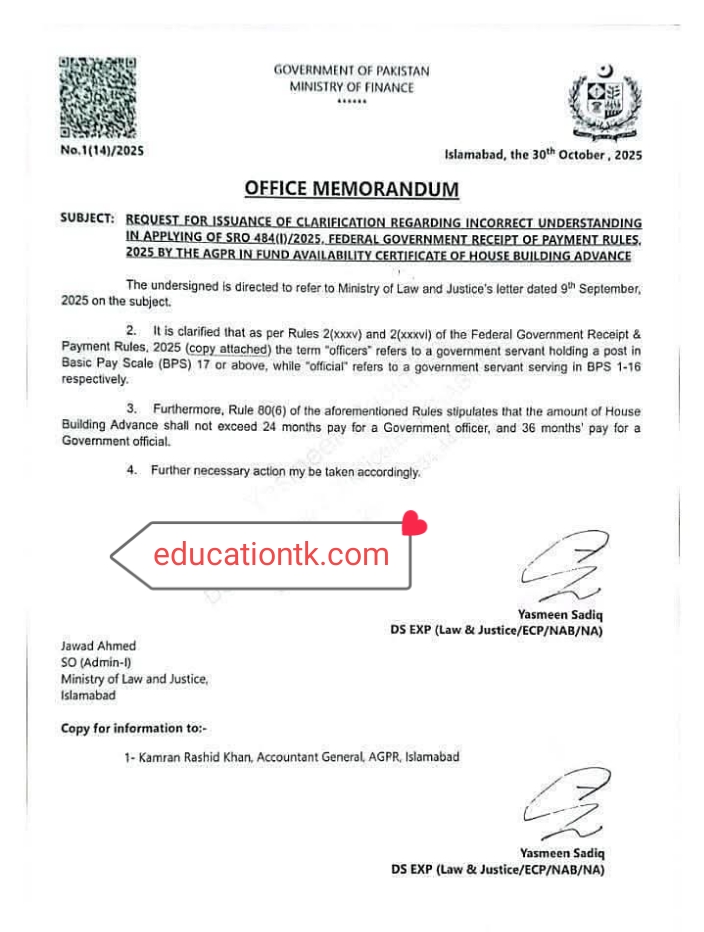 GOVERNMENT OF PAKISTAN MINISTRY OF FINANCE CLARIFICATION HBA RULES 2025 GOVERNMENT OF PAKISTAN MINISTRY OF FINANCE CLARIFICATION HBA RULES 2025 🏛️ GOVERNMENT OF PAKISTAN MINISTRY OF FINANCE CLARIFICATION HBA RULES 2025 A critical update has been issued by the **Ministry of Finance**, addressing a widespread misunderstanding in the application of the House Building Advance (HBA) …