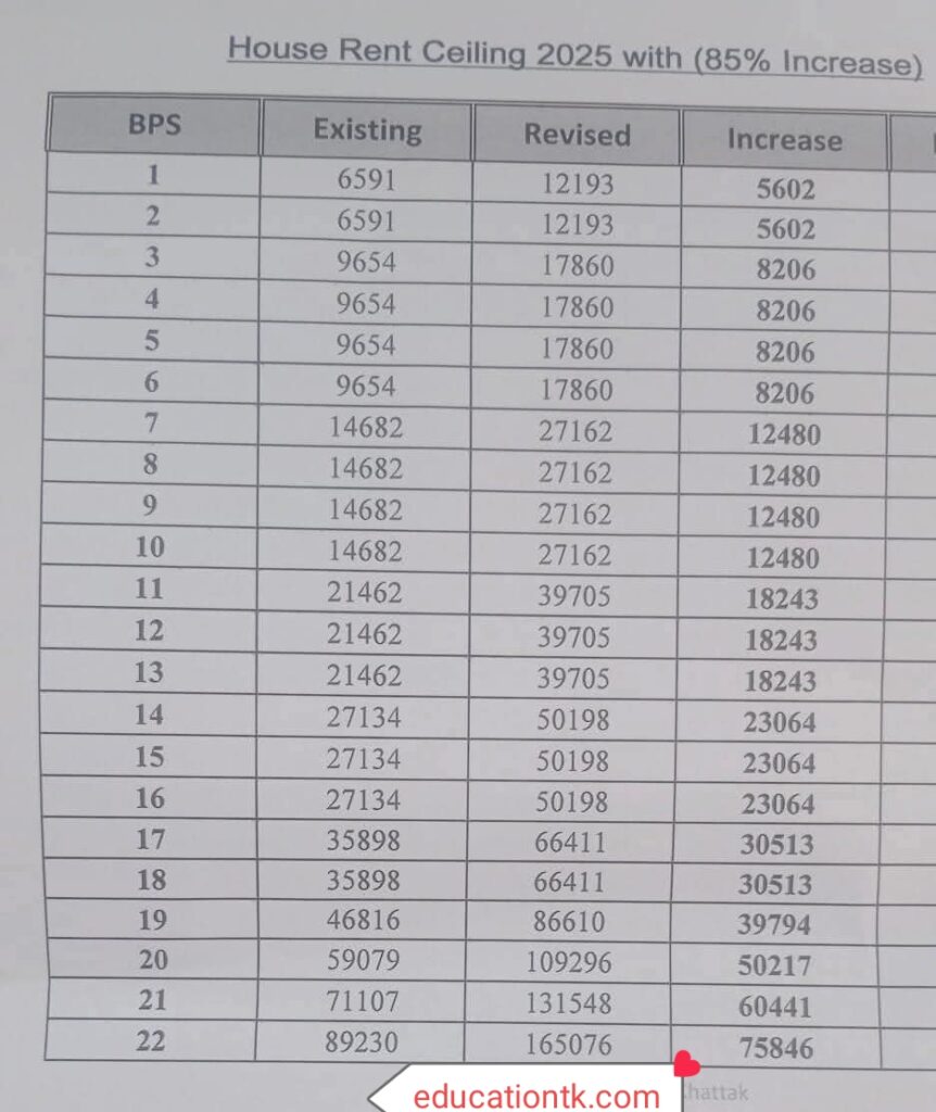 💰 Revised House Rent Ceiling 2025: BPS 1 to BPS 22 Details