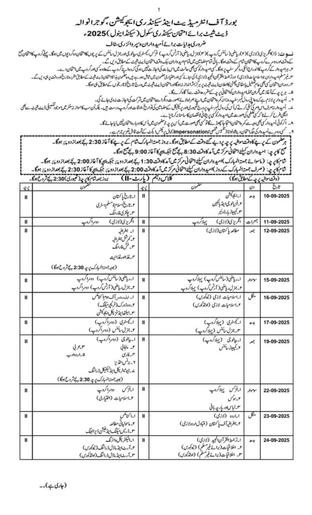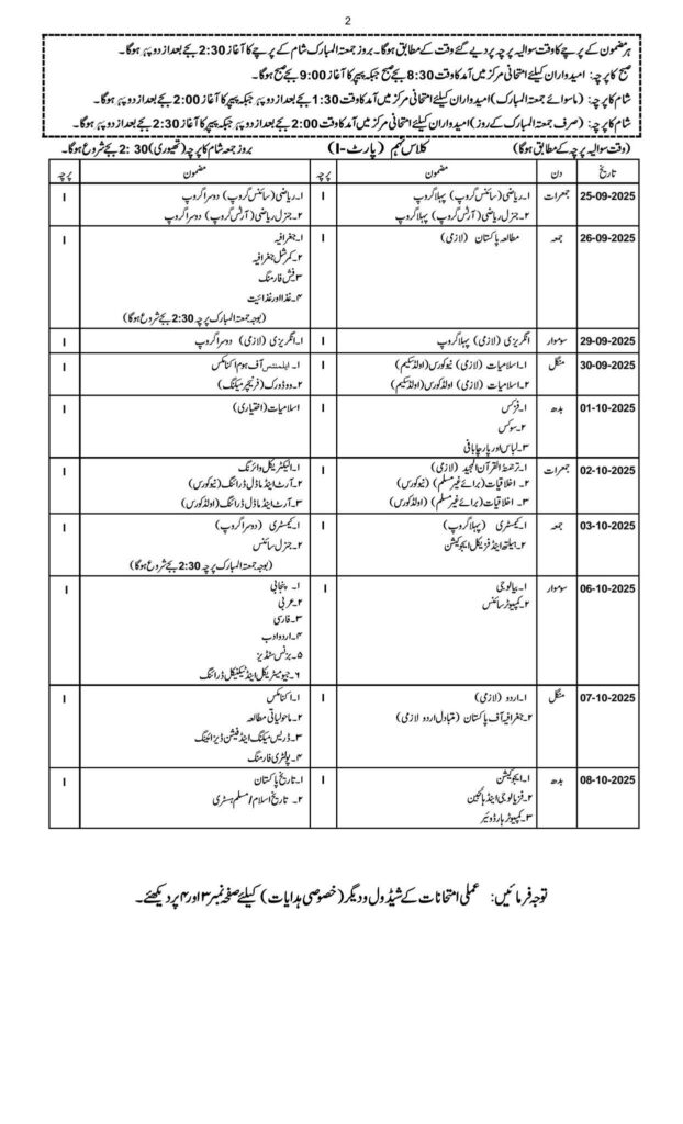 - 1 DATESHEET – ALL PUNJAB BISE : Your Complete Guide to SSC Second Annual (Supply) Exams 2025