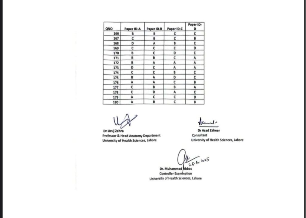 1. UHS (Punjab) Question Paper & Key -Official Answer Key