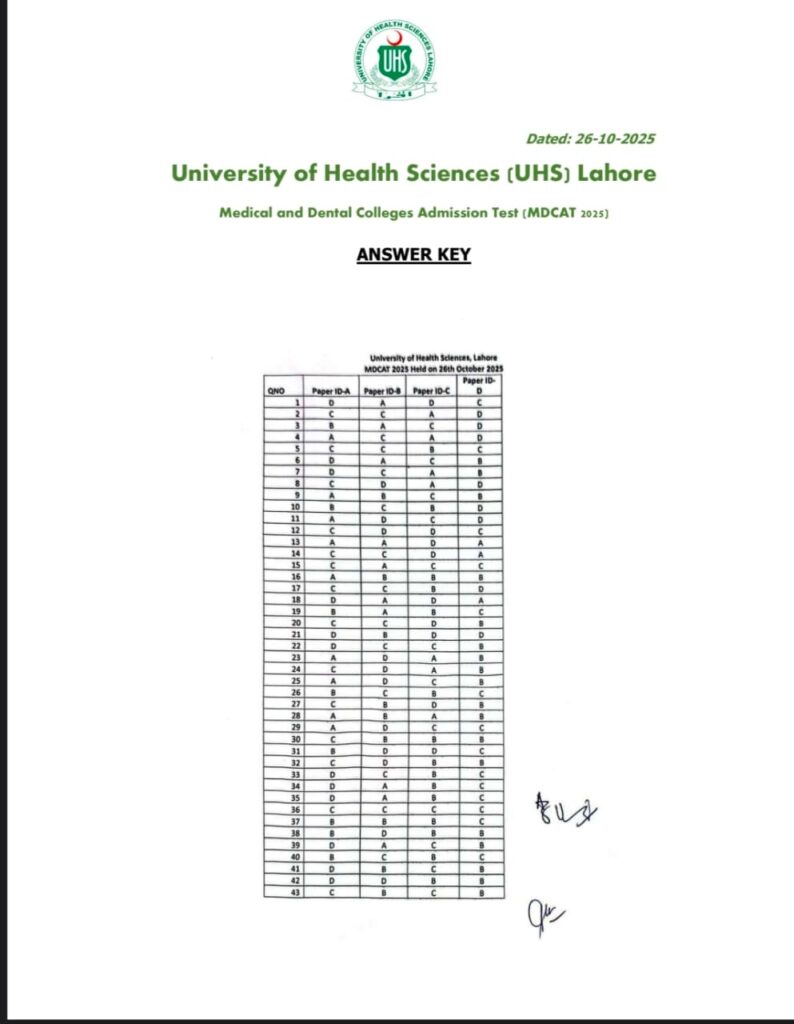 UHS MDCAT 2025 – Check Paper and Answer Keys for 26 October 2025