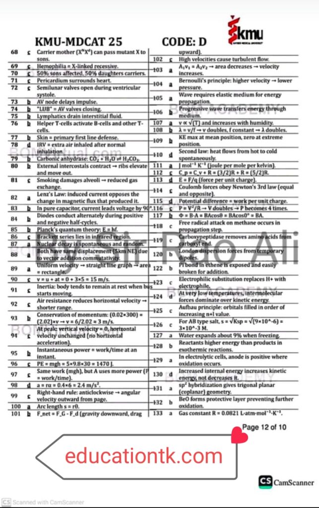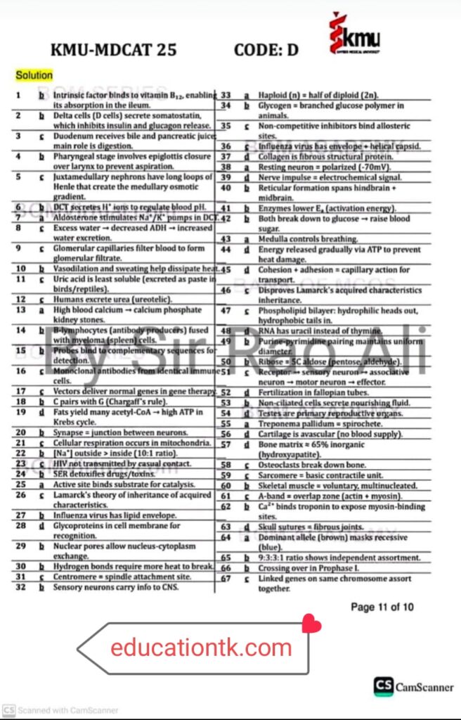 Get From the Images: Unlocking KMU-MDCAT 25 Answer Key Knowledge
