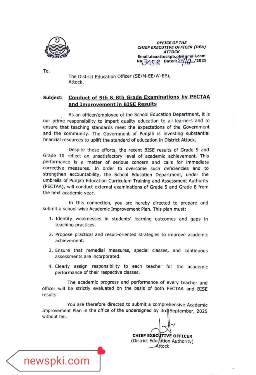 PECTAA 5th, 8th class Exam 2025 The Path to Academic Improvement It is an official letter detailing new directives for improving student results in Attock. Learn about the importance of targeted examinations, accountability, and academic planning. Introduction Ever wondered how official directives can spark real-world change? A recent document, and if we take from the …