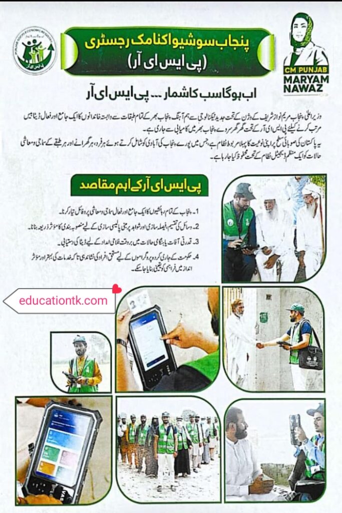 حکومت پنجاب کی جانب سے PSER (Punjab Social & Economic Registry) ٹیمیں آپ کے علاقے میں سروے کے لیے آ رہی ہیں۔ آپ سے گزارش ہے کہ: